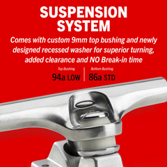 • Durable Hand-poured 96a urethane pivot bushings for better response.