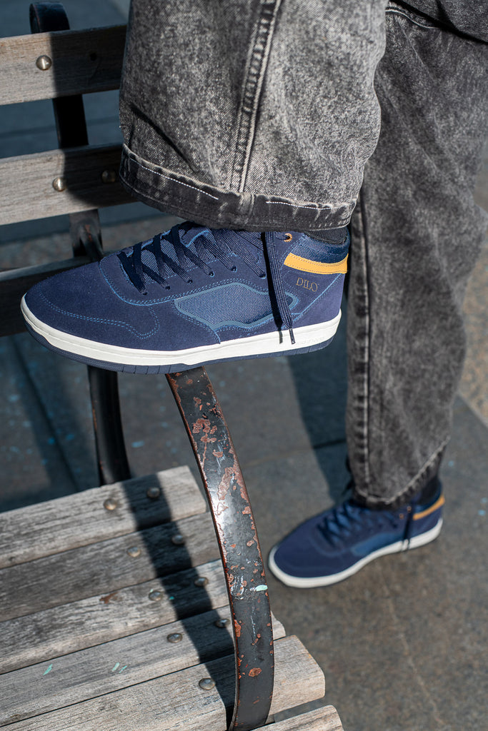 John Dilo joins the pro shoe ranks with our first-ever cup sole design, featuring a sleek mid-top upper for the skate community. This shoe is crafted with luxurious suede and leather, along with durable nylon mesh side panels and a tongue, making it one of the lightest cup soles available. Our custom outsole combines a familiar yet original design, using herringbone gum rubber for maximum grip and board feel.