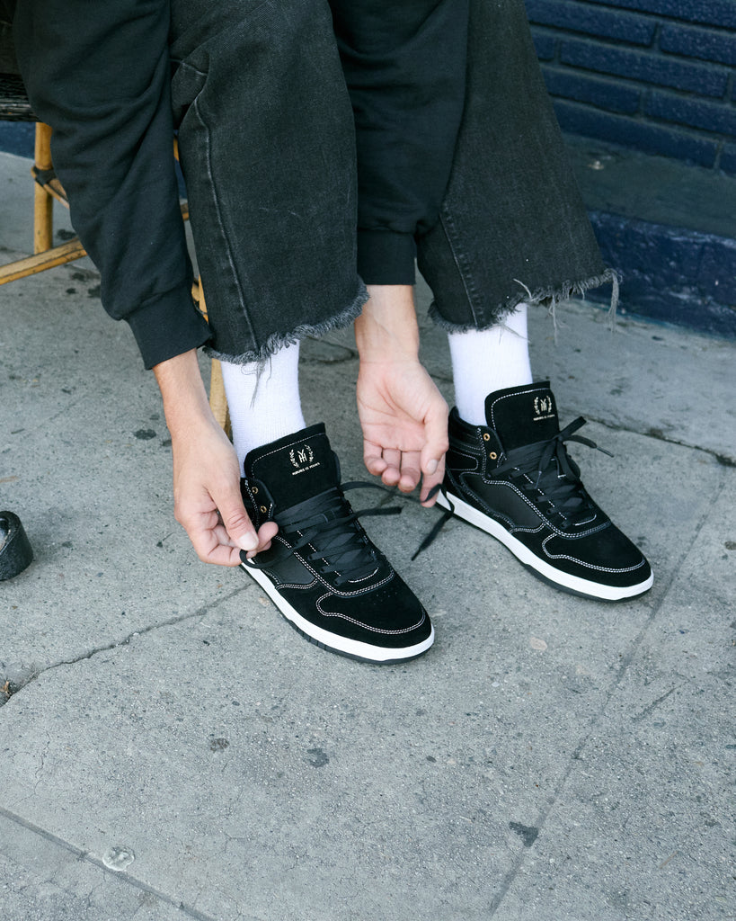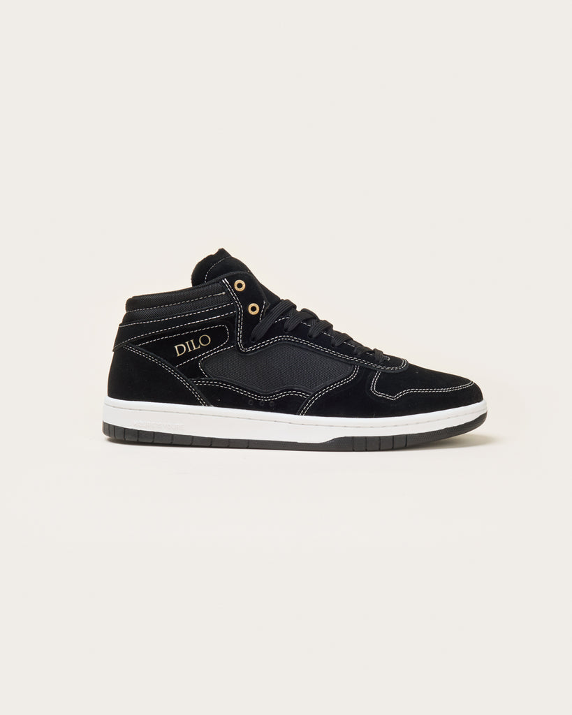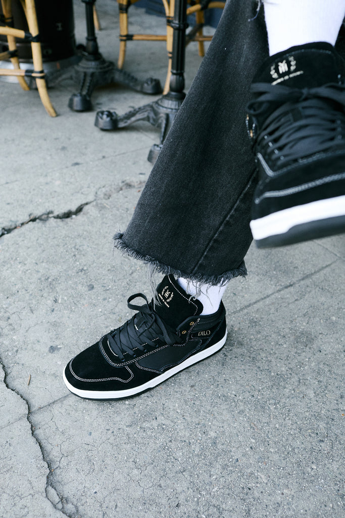 John Dilo joins the pro shoe ranks with our first-ever cup sole design, featuring a sleek mid-top upper for the skate community. This shoe is crafted with luxurious suede and leather, along with durable nylon mesh side panels and a tongue, making it one of the lightest cup soles available. Our custom outsole combines a familiar yet original design, using herringbone gum rubber for maximum grip and board feel.