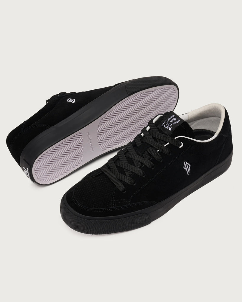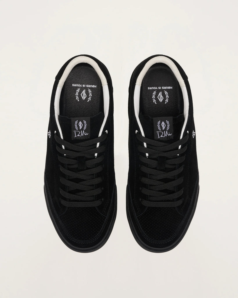 The DMC-1 re-designed by Dustin Dollin for this limited edition capsule collection outfitted in a rich black suede and contrasting white details.
